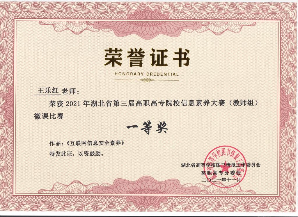 2023年湖北省高职高专院校第五届信息素养大赛团体一等奖