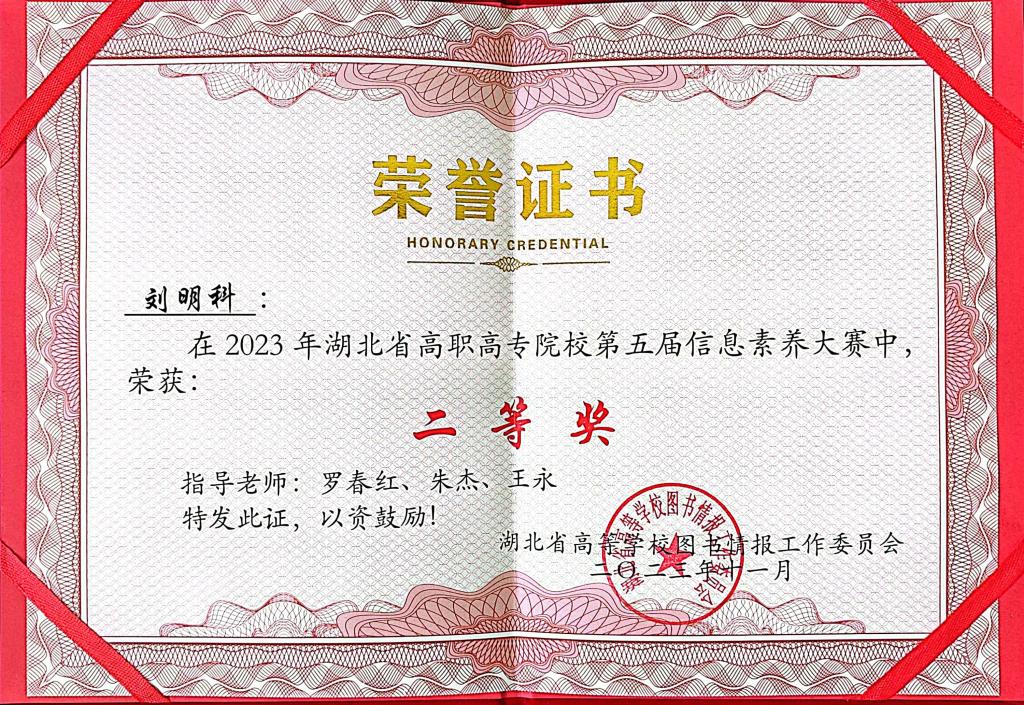 2023年湖北省高职高专院校第五届信息素养大赛二等奖刘明科